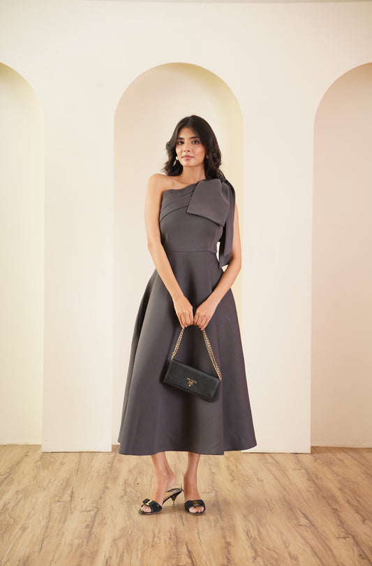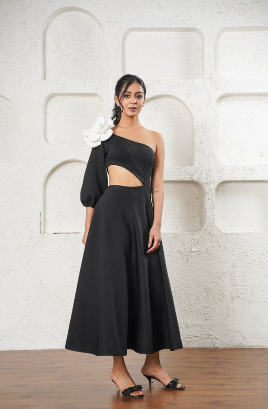 Cocoa Off-Shoulder Dress with Cutwork Hem
